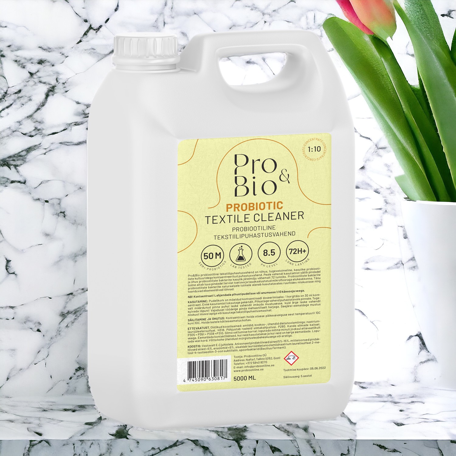 Pro&Bio probiootiline tekstiilipuhastusvahend on tõhus, tugevatoimeline, kasulike probiootiliste kultuuridega kontsentreeritud puhastusvahend. Peale vahendi kasutamist säilib pindadel ja õhus probiootiliste bakterite kasulik järelmõju vähemalt 72 tunniks. Probiootiliste bakterite toime aitab luua pindadel tervist toetava ja tasakaalustatud mikroflooraga elukeskkonna. Tänu probiootiliste bakterite naturaalsele toimele alaneb kasutatavates ruumides niiskustase ning taanduvad ebameeldivad lõhnad.